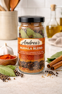 Masala is the Indian term for a blend of spices. It can be any simple or complex combination. I grind fresh seeds in a coffee grinder and place in a shaker bottle marked “Andrea’s Spice Mix.” The spices I use have been proven to possess therapeutic and healing properties. Spices and herbs contain antioxidants, minerals and multivitamins. Because spices are nutrient dense, they are thermogenic, which means they naturally increase your metabolism. Centuries old eastern medicine and now recent studies and scientific research both boast the medicinal healing benefits of spices. Discover what your favorite flavors are and create your own signature blend to share with friends. Here’s my latest fave.